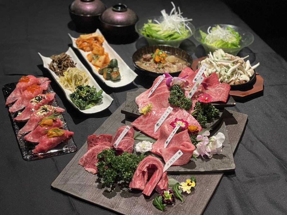 本套餐除了五种受欢迎的和牛部位外,还会为您提供两种上等严选部位。套餐还包含了炖和牛牛筋、用和牛高汤炒的黃油蘑菇、用无农药蔬菜腌制的自制泡菜和传统韩国小菜等。海胆,鱼子酱和鲑鱼子制作的精致寿司也将为您完美奉上。当然,一份传统的美味韩式拌饭也必不可少。最后还将为您提供用牛骨经过10小时以上精心熬制的美味汤品。 <菜单内容> 7种黑毛和牛拼盘 韩式生菜沙拉 炖牛筋 黄油蘑菇 3种泡菜 3种韩式小菜 肉寿司 牛骨汤・本套餐务必按照当日入店人数进行预约。 ・套餐预约人数:2人以上。 ・由于进货状况等原因,菜单可能会有所变更,望见谅。 ・照片仅供参考。 ・如果您在预订时间后 15 分钟内未到达,我们可能无法为您确保预订的座位,请见谅。