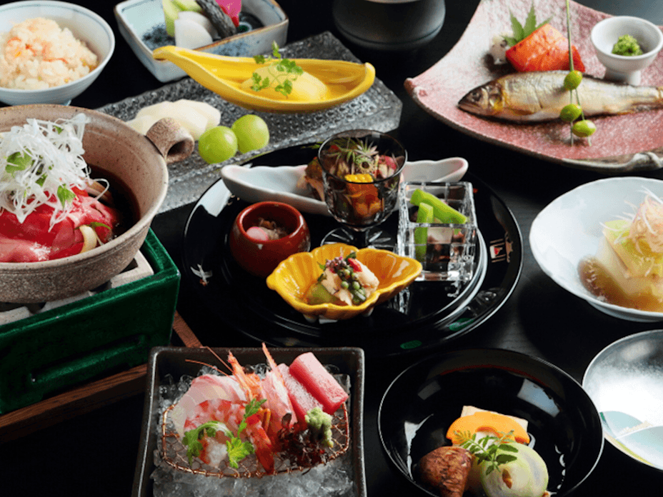 [套餐内容] 本套餐为推荐的怀石料理套餐,每一份料理都捕捉到日本不断变化的季节的美丽色彩。 请在舒适的客房内享用随季节变化的会席料理。 *餐食将在包间内提供。 [套餐菜品] 开胃菜 什锦碗 刺身 蒸菜 炖菜 烧烤 台物 炸物 止碗汤 主食 酱菜 饮品【取消政策】 4天前:免费取消 3 天前到当天:不得取消 【注意事项】 ・请务必根据来店人数预约本套餐。 ・此套餐需要 2 人或以上的预订。 ・本套餐的菜单内容无法更改。 ・照片为仅供参考。